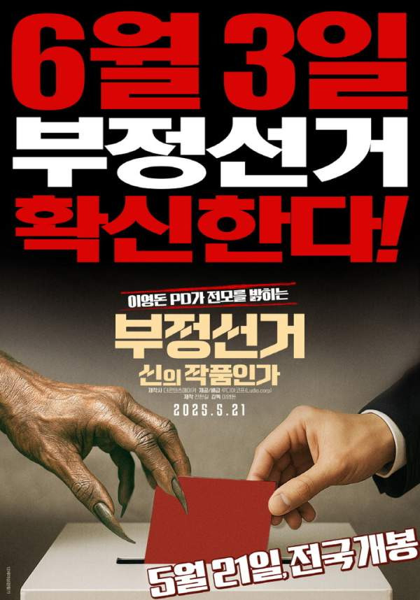 ‘부정선거, 신의 작품인가’는 다가오는 6·3 보궐선거를 앞두고 선거 과정의 투명성과 절차적 정당성에 의문을 제기하는 정치 다큐멘터리입니다. 107분 러닝타임의 이 작품은 사전투표 시스템과 개표 전산 프로그램의 구조적 문제를 중심으로 다양한 실제 사례를 집중 분석합니다. 상영관에서는 개봉일부터 관객들이 꾸준히 입장하고 있으며, 사회적 파장이 크기 때문에 추가 확대 개봉도 기대되고 있습니다.