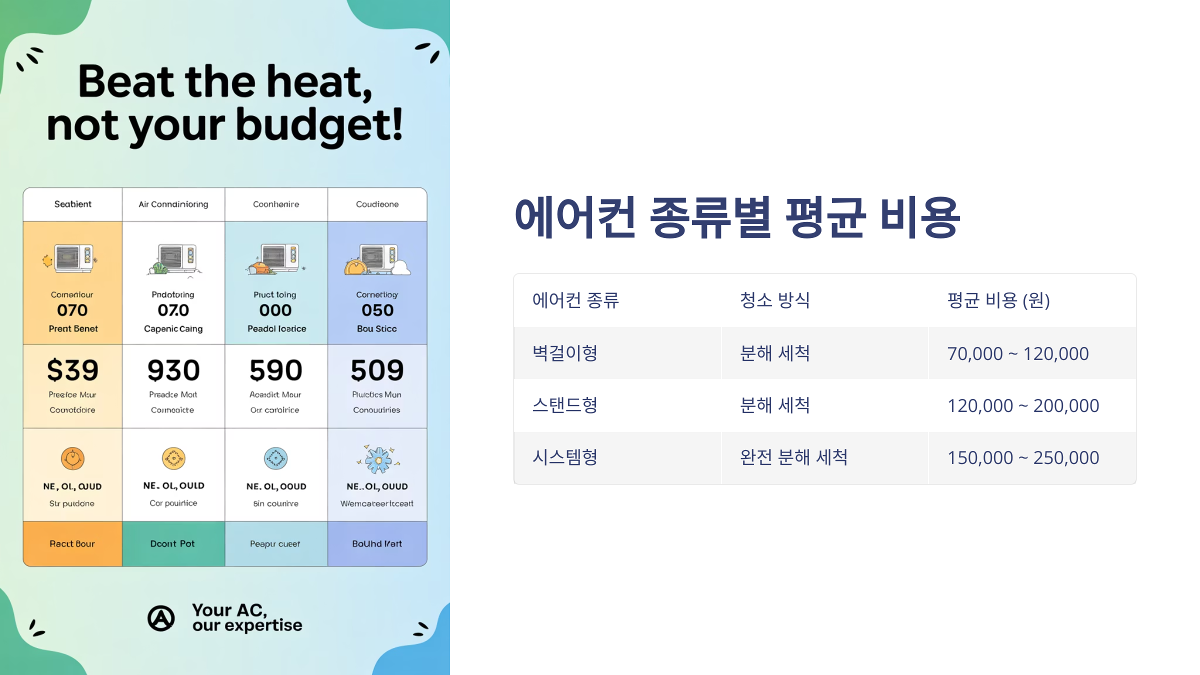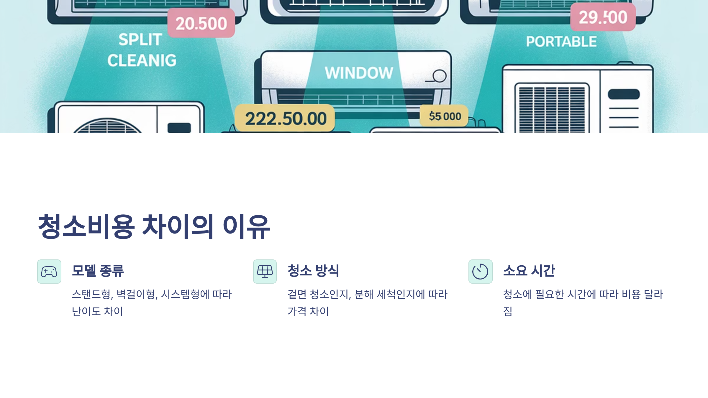 | 에어컨 종류 | 청소 방식 | 평균 비용 (원) |