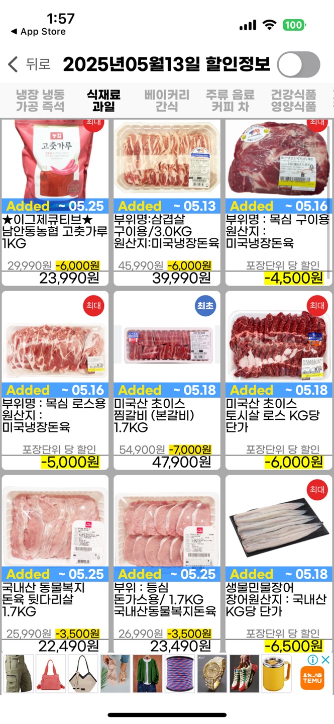 🥩 육류·수산 할인 정보