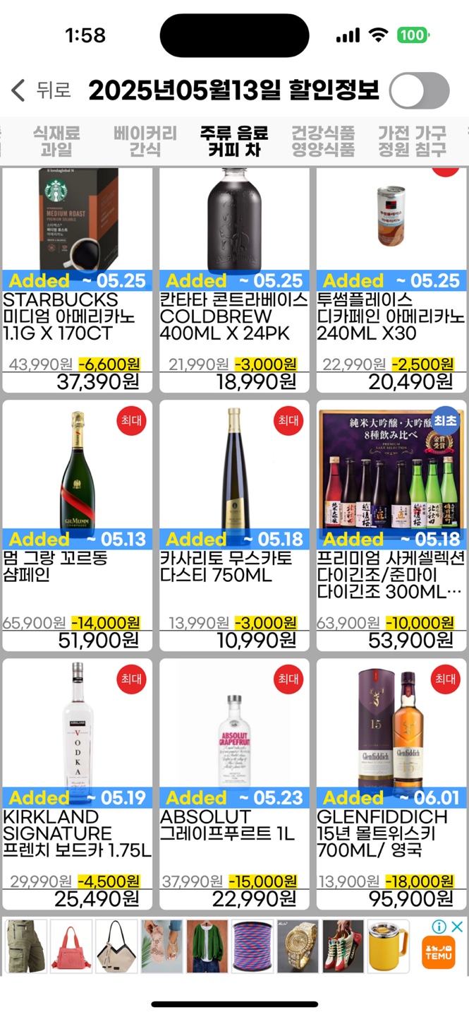 ☕ 커피·음료·주류 할인 정보