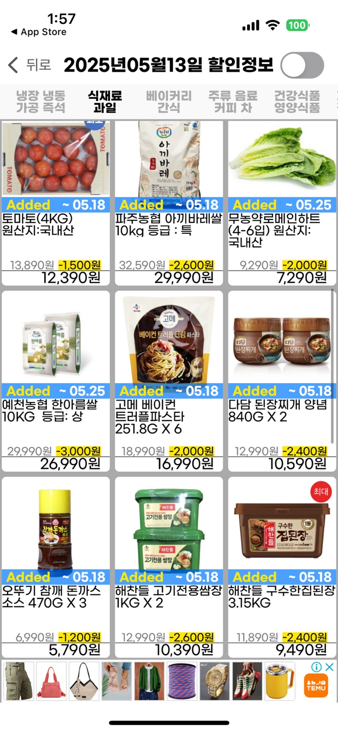 🥬 과일·야채·쌀 할인 정보