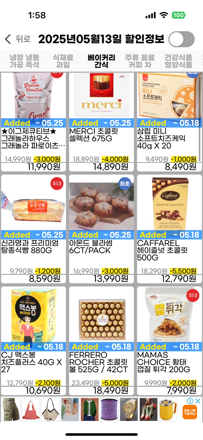 🍞 베이커리·간식 할인 정보